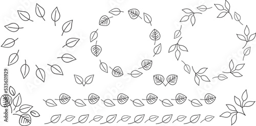 © Megane, Obraz premium 手書き植物の飾り枠セット 黒