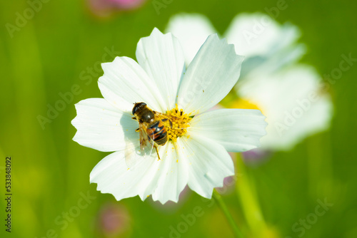 © tuo, Obraz premium 白いコスモスに留ったミツバチ