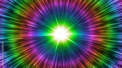 Fototapeta premium 虹色 集中線 流線 勢い カラフル 放射 放射状 円形 鋭い 集中 中央