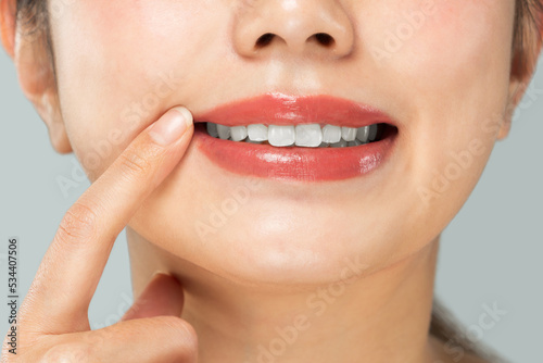 © kei907, Obraz premium 女性は白い歯を指差している。