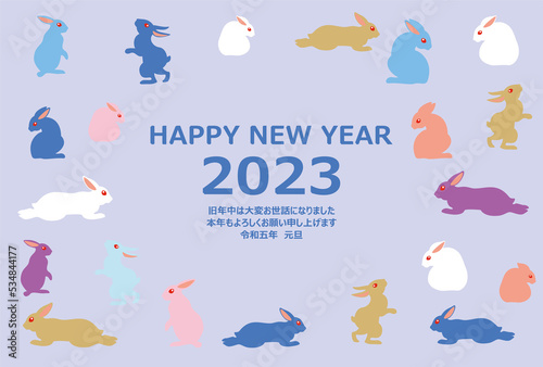 © Hinageshi, Obraz premium シンプルなうさぎのイラストの年賀状素材