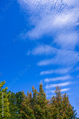 © kikisora, Obraz premium 紅葉し始めた木と秋の空