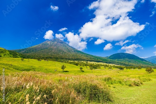 Fototapeta premium 【大分県】すすきが生えた10月初旬の由布岳 湯布院