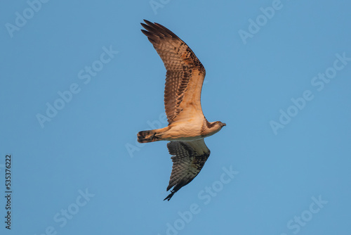 Obraz premium 朝陽を浴びながら飛翔するミサゴ