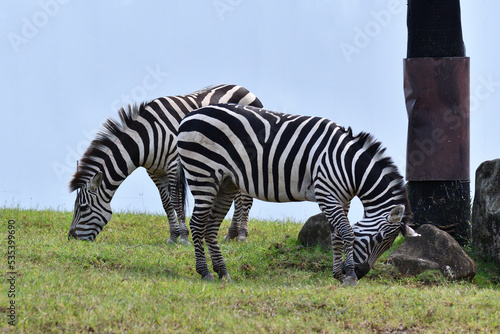 © YATA!, Naklejka premium 二頭の草を食べるシマウマ