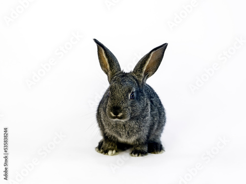 © chikala, Obraz premium 白背景前に立つ斜め前姿の黒い子ウサギの全身