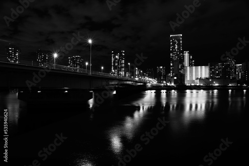 Fototapeta premium モノクロームの隅田川夜景