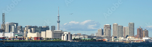 Fototapeta premium 東京湾にスカイツリーとビル群/青空のコピースペース/日本東京都