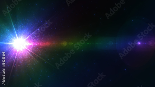 Obraz premium 虹色 レインボー 発光 粒子 レンズフレア