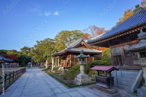 © Scott Mirror, Fototapeta premium 静寂に包まれたお寺の広い境内の秋の情景@香川