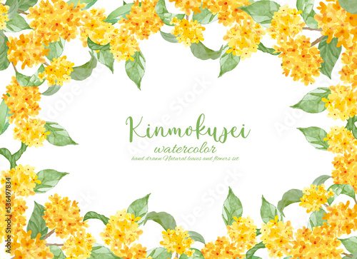 Obraz premium 水彩で描いたキンモクセイの花のフレーム
