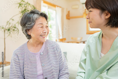 © One, Fototapeta premium 自宅 祖母と孫