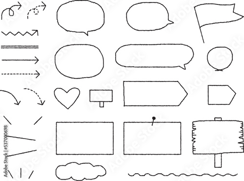 © smile, Obraz premium 手描きの矢印や吹き出しのイラストセット_アウトラインのみ