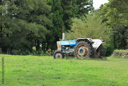 Naklejka premium 이제는 오래되어 움직이지 못하는 옛날 트렉터