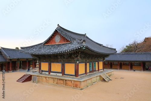 Naklejka premium 대한민국 경주에 있는 유명한 관광명소인 불국사의 아름다운 가을 풍경이다.