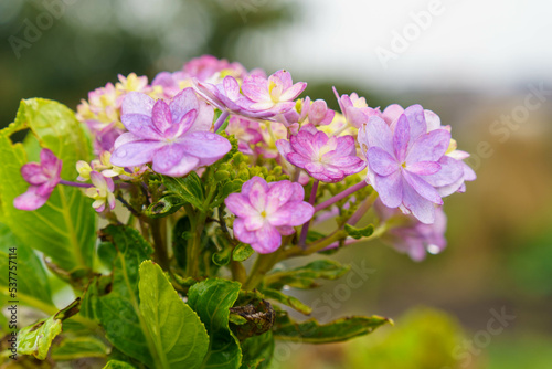 Fototapeta premium 綺麗に咲く秋のガクアジサイ