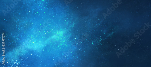 © gelatin, Fototapeta premium 青緑色の星空の風景イラスト 宇宙 星雲 背景イラスト