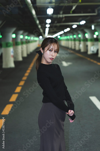 © peach100, Fototapeta premium 地下駐車場にいる女性