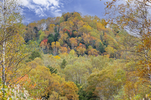 Fototapeta premium 秋の高原の風景 志賀高原の紅葉
