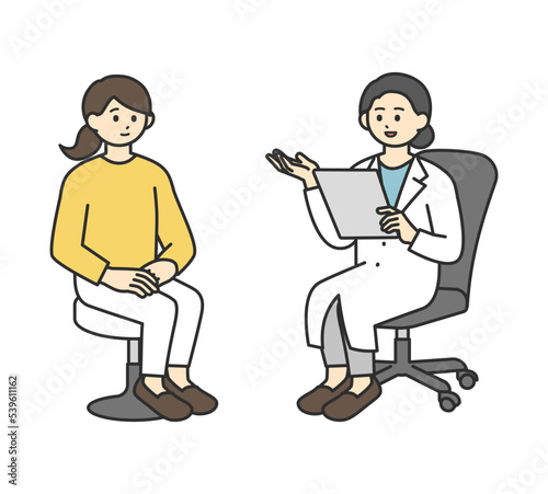 Fototapeta premium 若い女性を診断する医師のイラスト素材