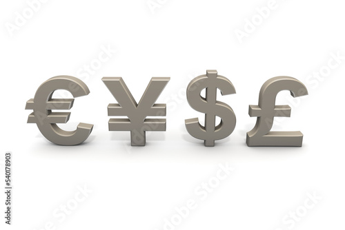 Fototapeta premium ドル・円・ユーロ・ポンドの立体文字。$・¥・€・£の為替相場のイラスト。