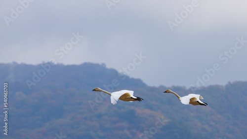 © Yuuki Kobayashi, Fototapeta premium 飛び立つペアの白鳥