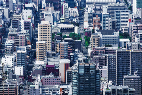 Obraz premium 高層ビルの上から見える大阪の街並み