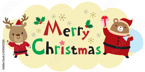 © 中居さちこ, Naklejka premium クリスマスタイトルバナー/サンタくまとトナカイ