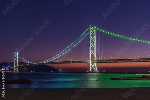 © e594, Fototapeta premium ライトアップされた明石海峡大橋