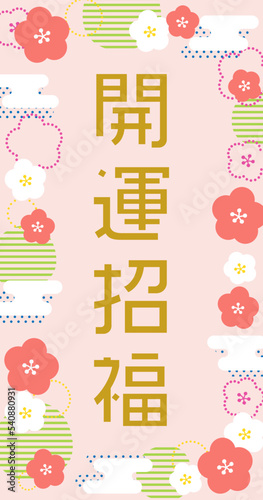 © Kimama, Fototapeta premium 開運招福のお札 梅の和柄ピンク背景
