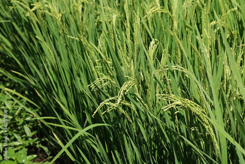 Obraz premium 水田の緑の稲穂