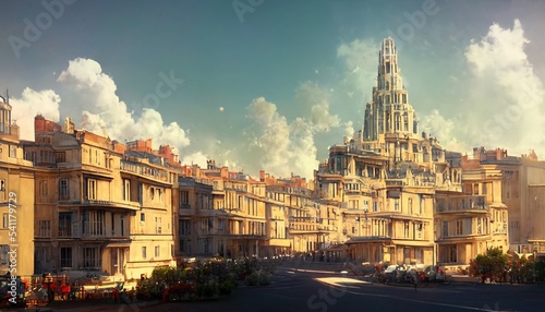 Naklejka premium イラスト 絵画 城 ファンタジー 天空 スチームパンク