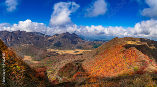 © narutake, Fototapeta premium 大船山は九重連山で3番目に高い山,春はミヤマキリシマの大群落,秋は紅葉,冬は雪化粧と四季を通じて登山者の心を惹きつける