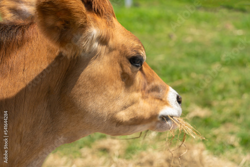 Obraz premium 藁を食べるジャージー牛