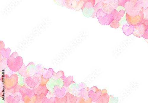 © Kiyosi, Fototapeta premium 水彩の華やかハートフレーム ピンク