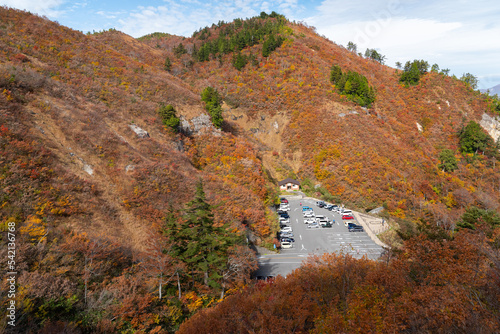 Obraz premium 紅葉を見ながら山に登る 岐阜県三方岩岳