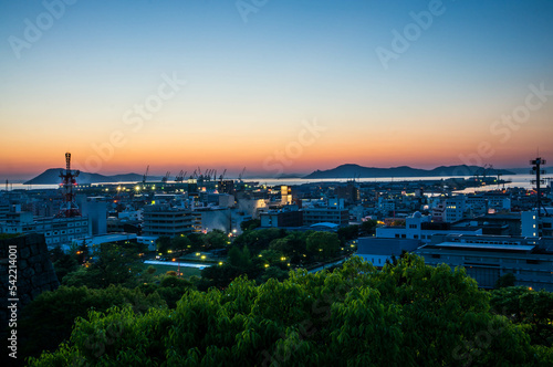 © ryo96c, Naklejka premium 香川 丸亀城から眺めた夕暮れの街並み