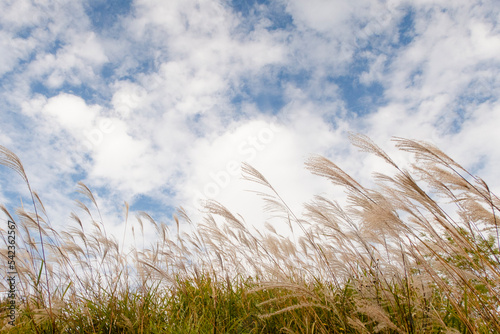 Obraz premium 季節の移ろいを感じる秋の空とススキ