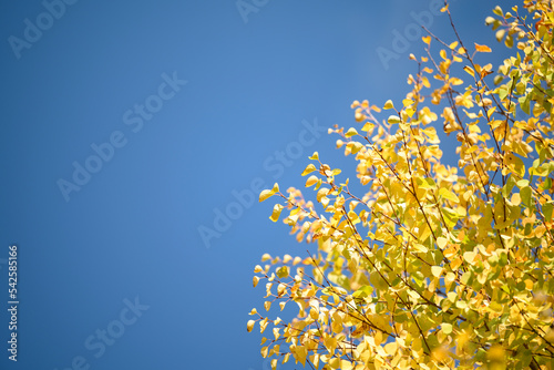 Obraz premium 河口湖畔の紅葉 イチョウの木