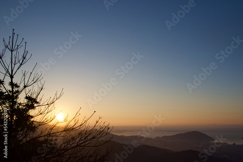Obraz premium 日の出と木のシルエット