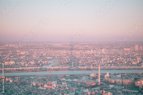 © 秋実 鶴谷, Fototapeta premium 東京 大都会 上空写真 夕日 イメージ
