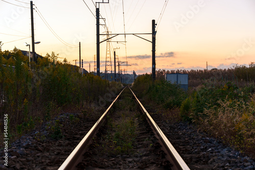 © Nakamasa_0714, Obraz premium 夕刻の線路_横