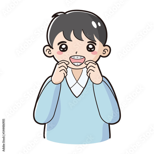 Obraz premium 歯科矯正のワイヤーを装着した子どものイラスト
