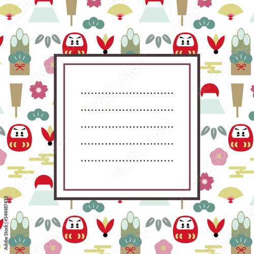 Fototapeta premium お正月の縁起物のベクターイラストお手紙パターン