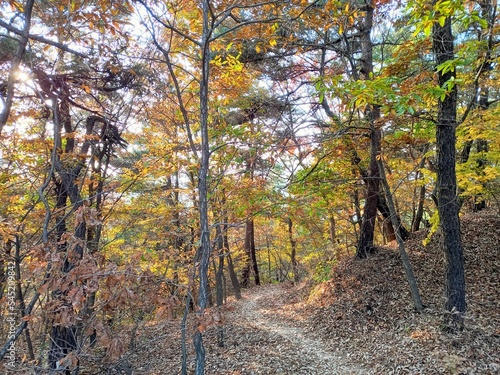 Fototapeta premium 낙엽이 안내하는 등산로 길