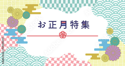 Fototapeta premium おしゃれ和モダンの和柄背景ベクターイラスト素材お正月バナーテンプレート