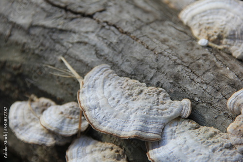 © misumaru51shingo, Fototapeta premium 木の幹に生えた、たくさんの白いキノコ