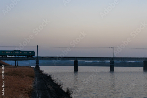 Obraz premium 加古川を走るローカル電車
