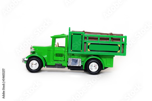 © Larysa Pulcha, Fototapeta premium Зеленый игрушечный грузовик