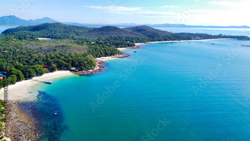 Obraz premium 真っ青な海のビーチリゾートを上空から眺める タイ・サメット島
